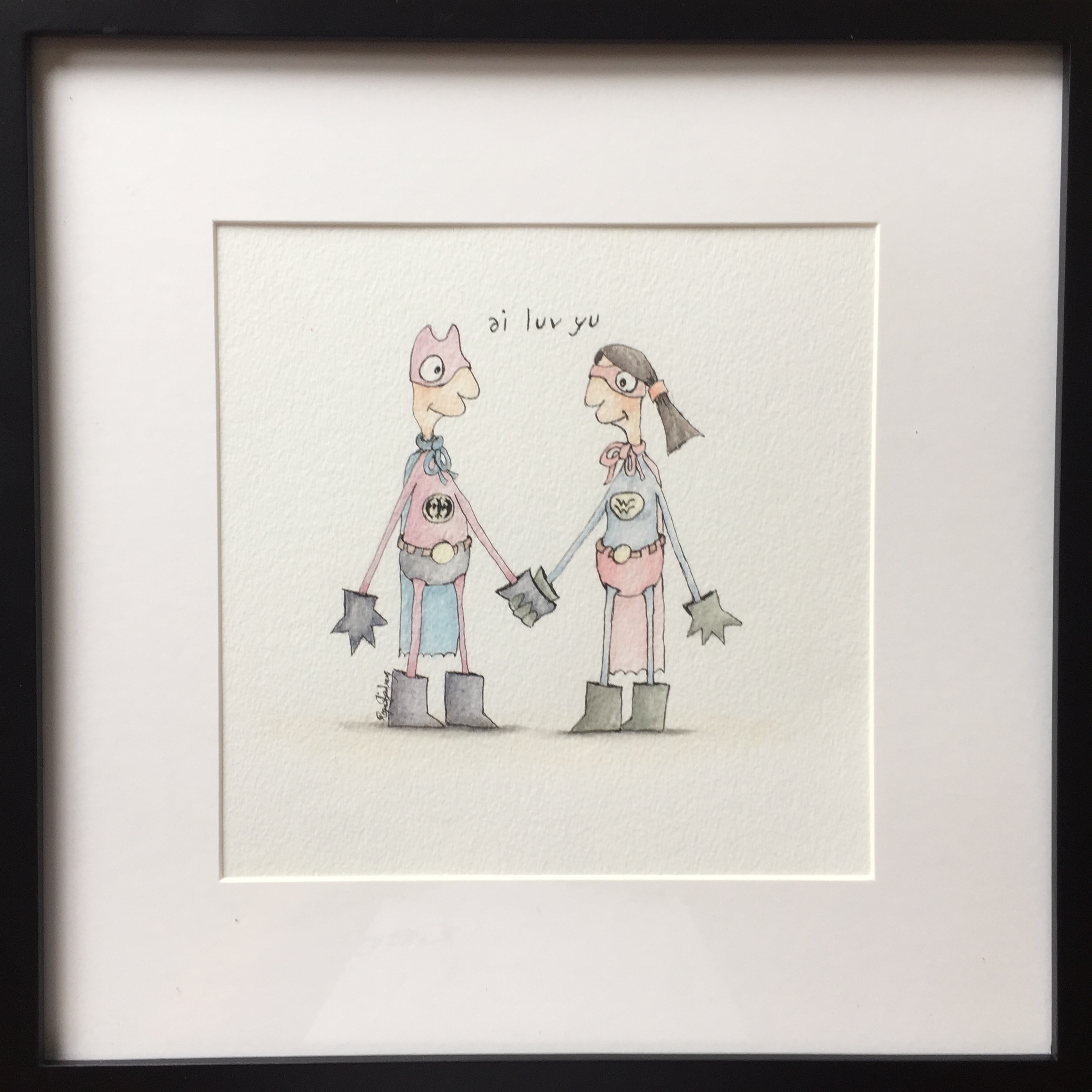 • Tusjtegning fargelagt med akvarellmaling på akvarellpapir.